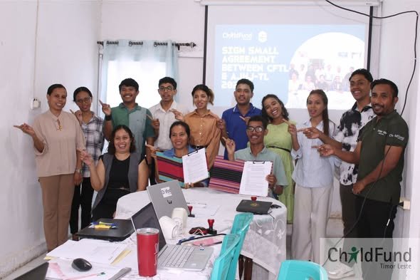On October 1, 2025, ChildFund Timor-Leste and the Associação Juventude Hakbi’it Justisa Timor-Leste (AJHJ-TL) have officially signed a small grant agreement under Swipe Safe Online Safety Program. This partnership aims to strengthen the child protection system for children and young people in Timor Leste.